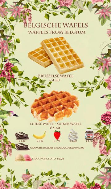 Dagelijks worden in Eva haar atelier verse Luikse wafels gemaakt. Deze wafels zijn overheerlijk en je kan ze met gelato, banaan, toppings, chocolade, aardbeien, slagroom.... upgraden.
